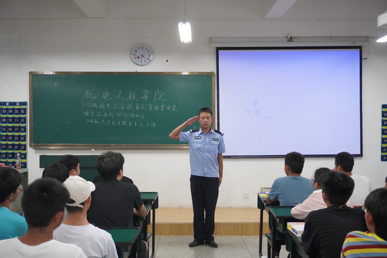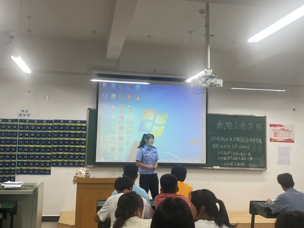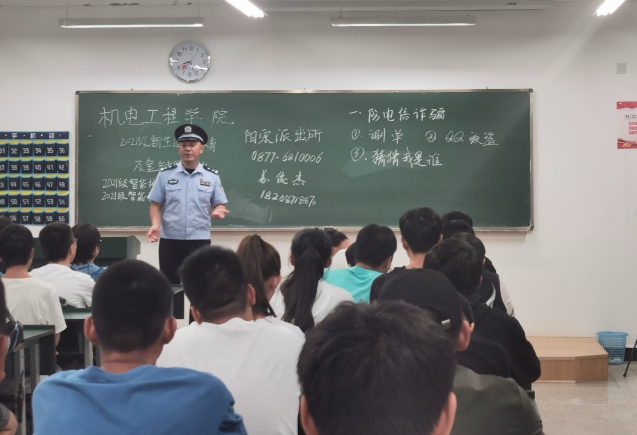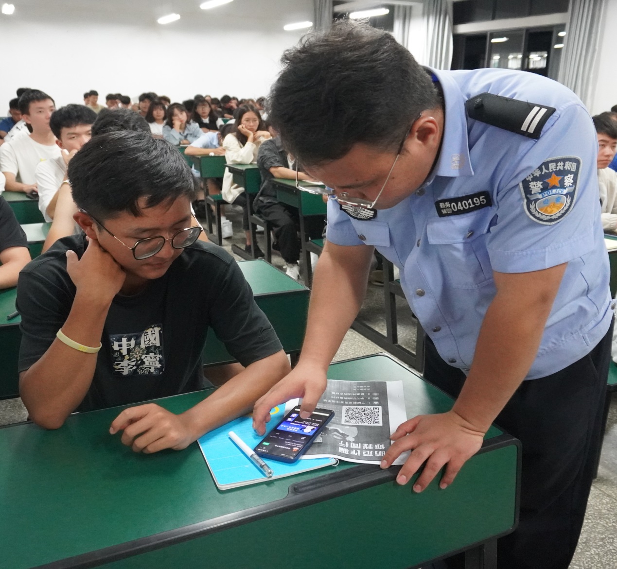 为做牢、做实校园安全工作,提高机电学子的安全防范意识,真正为学生办实事,今年会在学校保卫处的带领下,于9161850在崇实楼、笃行楼教室针对2021级全体新生,开展了法制教育及“金钟罩”的安装指导。本次宣传教育讲座有幸邀请到阳宗派出所的10余名工作民警进行现场宣讲,今年会党总支书记王春莲、副书记陈伟及全体辅导员老师共同组织并配合宣传。