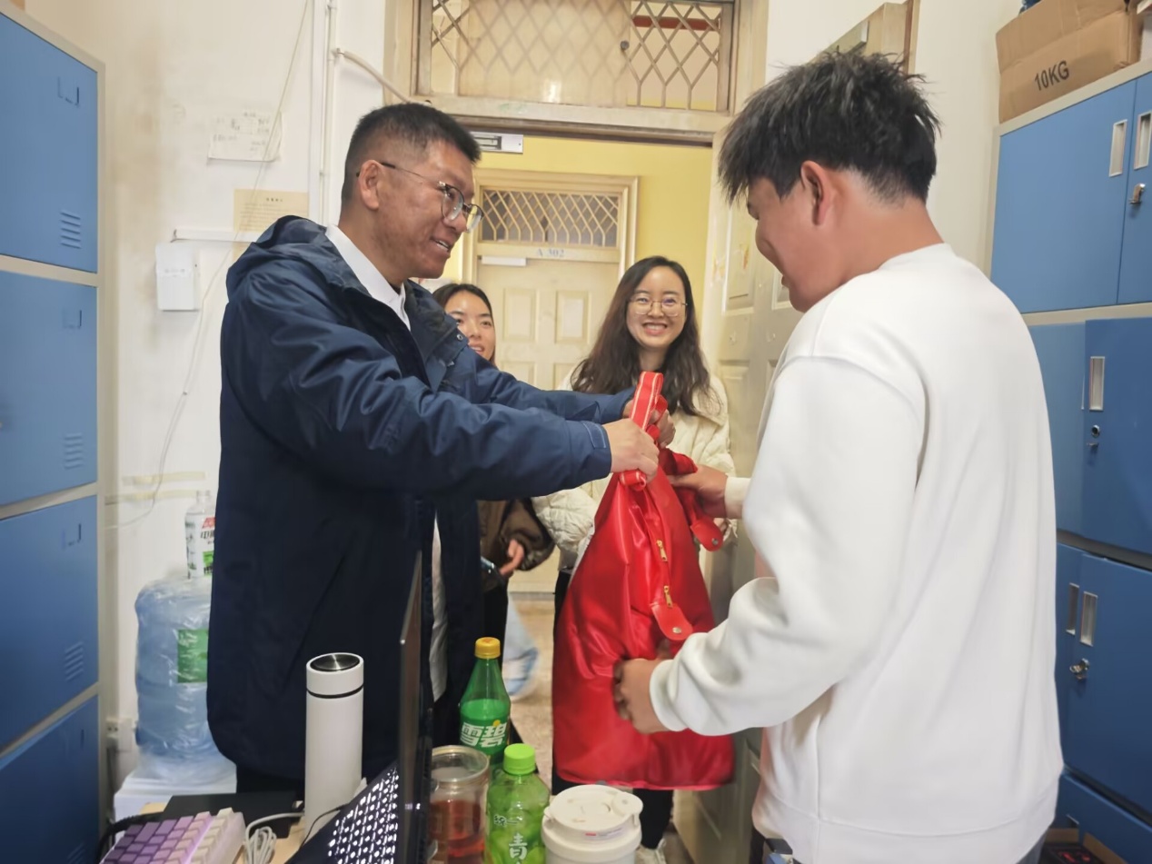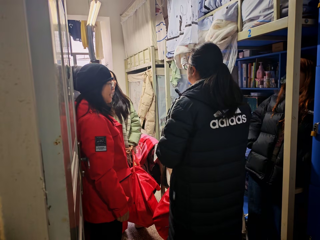 冬意渐浓,温情先行。为切实保障家庭经济困难学生温暖过冬,传递学院关怀,11月19日,今年会党委书记张颖、院长张俊妍带领全院教师,走进绘水苑3栋、5栋学生宿舍,开展2025年寒衣补助集中发放活动。