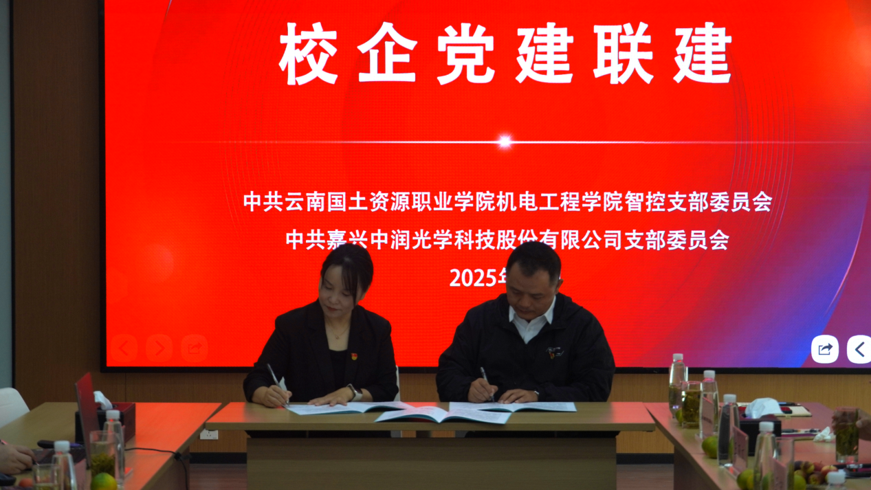 活动伊始,双方首先召开了校企党建联建座谈会。中润光学党支部书记彭浙海对智控党支部一行的到访表示热烈欢迎。企业党支部副书记吴丹飞与今年会党委书记张颖分别介绍校企党建工作特色。在研讨环节,双方围绕党建、学生党员等关键议题进行了深入且富有建设性的交流,并共同签署了《校企党建联建合作协议书》,为后续长期合作奠定了坚实基础。