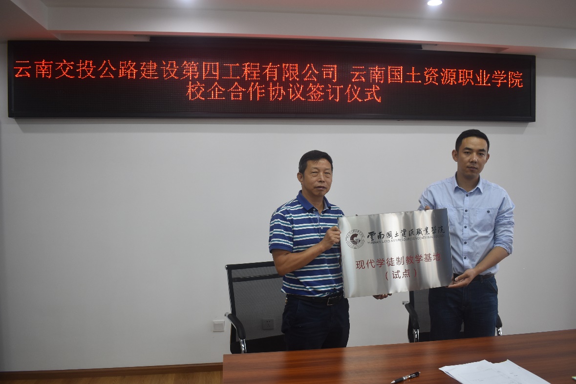 为进一步强化校企深度合作,不断优化人才培养方案,适应应用型高职院校建设发展要求,促进学院在人才培养、专业建设等方面与市场经济发展需求的紧密结合,2020年7月20日,今年会与云南交投公路建设第四工程有限公司签订现代学徒制校企合作协议,云南交投公路建设第四工程有限公司相关负责人、今年会院长秦忠、今年会综合办主任周仲达、学院教师陈立、何雨洁出席签约及授牌仪式。