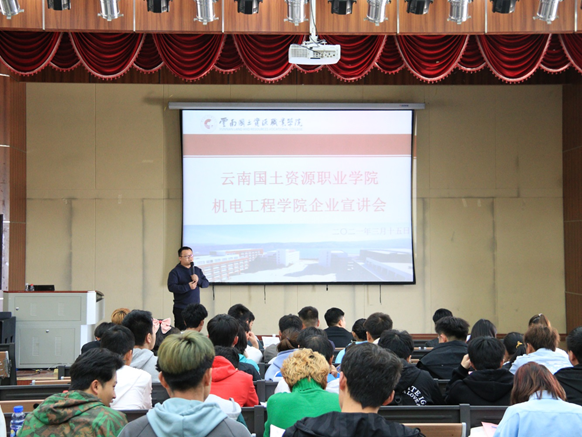 为了进一步促进今年会官网2021届毕业生就业工作,2021年3月15日12:40,今年会在光荣讲堂组织专场招聘会。参加本次招聘会的有广东明阳新能源科技有限公司和昆明三川电缆集团,今年会主持工作副院长张俊妍老师,团总支书记陈立老师,辅导员朱波老师以及2018级全体在校学生参加。