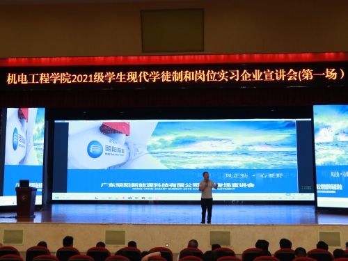 宣讲会开始,学院现代学徒制负责人熊国栋依次简单介绍了本次宣讲的八家企业,并对他们的到来表示热烈欢迎。同时,他希望全体同学要保持会场秩序,认真听讲,结合自己的实际情况慎重选择企业。