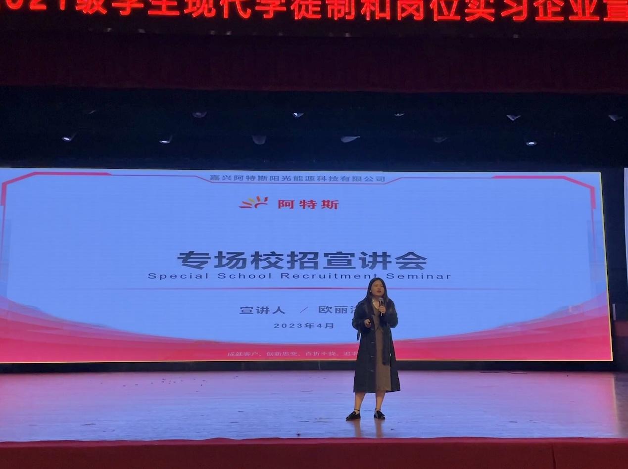 5月17日至18日,今年会分别在崇实楼602和明礼堂召开了2023年第三次企业宣讲会。本次企业宣讲会邀请了麒盛科技股份有限公司、浙江台华新材料股份有限公司、嘉兴阿特斯阳光能源科技有限公司、嘉兴隆基乐叶光伏科技有限公司4家企业到校进行宣讲,学院相关老师和2021级全体同学共同参与此次宣讲会。