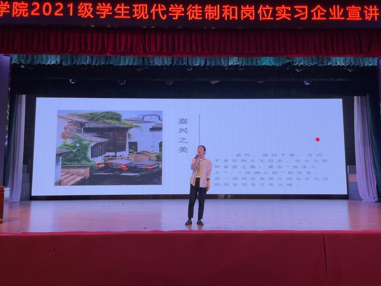 宣讲会上,学院现代学徒制负责人熊国栋依次简单介绍了本次宣讲的四家企业,并对他们的到来表示热烈欢迎。接着,四家企业负责人以视频、图片、PPT等方式,就企业文化、企业岗位需求及用人标准、晋升渠道、地理位置优势、薪资待遇等方面进行了介绍。部分同学就工种、工作时长、报名方式等进行了咨询提问。