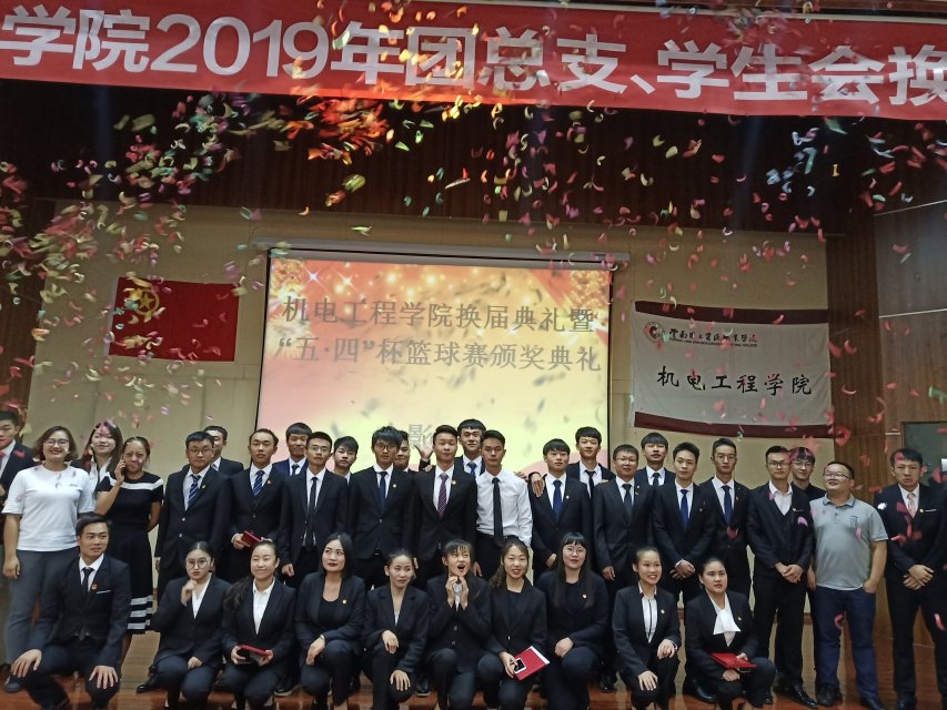 2019年7月4日晚19:00,今年会在光荣讲堂隆重召开2019年团总支学生会换届典礼暨“五四杯”篮球赛表彰大会。出席本次大会的老师有今年会党总支副书记张颖老师、团总支书记陈立老师、辅导员李玉老师,入席的有17级、18级学生会学生干部以及17、18级各班班委。