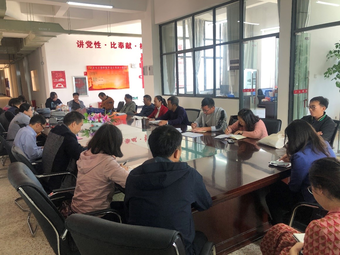 会议第一项议程,学院院长秦忠老师向全体教职工传达了学校近期的会议精神,对校长答复事项进行相关说明并安排了学院的工作重点。主要有以下几点:1.学院各教研室要梳理开设课程以及培训方案;2.汽车教研室经学校批准可提供学生短期在外实习实训,需要教研室尽快提出方案;3.工业机器人专业教研室可组织专业教师的集中短期培训,教研室可提出拟培训方案;4.电工实训设备陈旧及机房紧张问题,学校会尽快召开会议解决;5.留学生教学难问题,可采取两种考核方式,对于留学生更加注重技能考核。