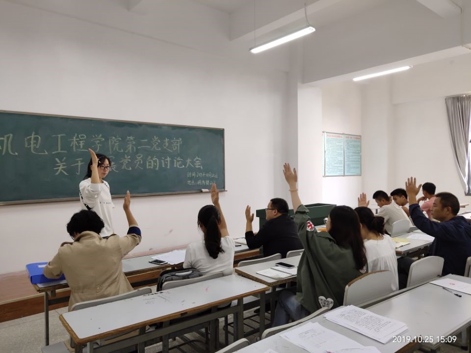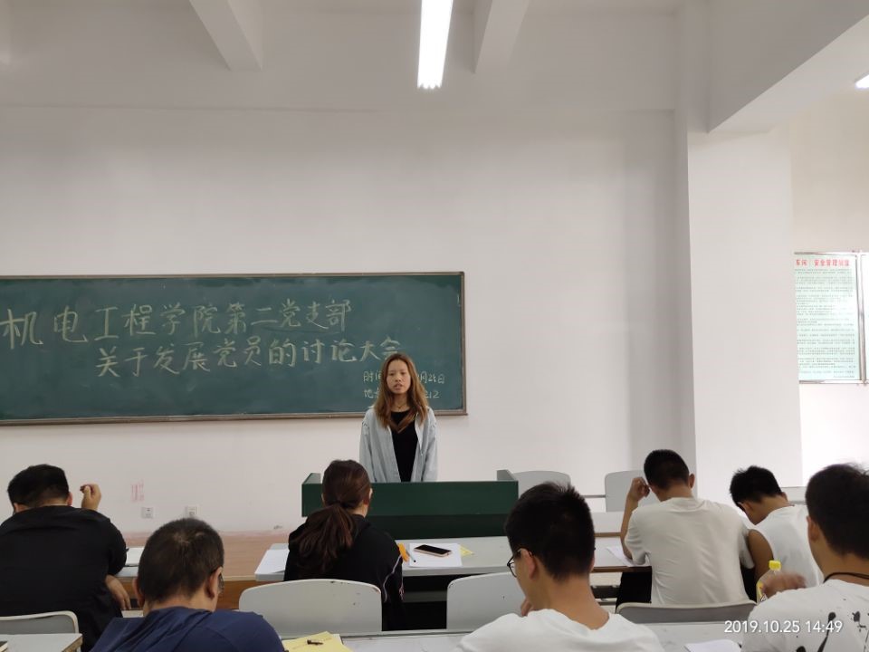会议讨论了关于接收陈阿华、杨立明、施雨辰等10名同志为中共预备党员的问题。会议伊始,十名同志分别宣读了入党志愿书,就自己对党的认识、入党动机、家庭成员和主要社会关系等情况做了汇报。十名同志围绕思想政治、学习成绩、学生工作等方面情况进行陈述,他们表示,在思想上,能积极学习党的基本理论知识、学习习近平总书记系列重要讲话精神,不断增强政治觉悟,提升党性修养。在学习和生活中,关心和服务身边同学,用自己的实际行动践行党员的模范带头作用。紧接着,入党介绍人分别介绍了十名同志思想、工作、学习等情况,一致认 为以上十名同志已具备了共产党员的条件,愿意介绍其加入中国共产党。