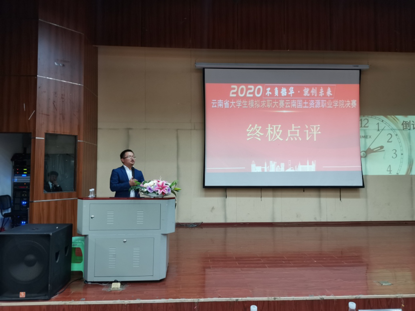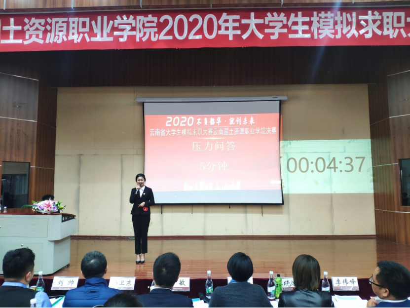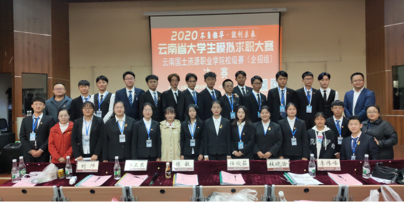 为全力做好我校大学生就业指导工作,加大就业服务工作力度,创新就业指导模式,引导大学生了解用人单位需求,合理进行职业规划,并选拔优秀代表参加省级比赛,今年会jinnianhui2020年大学生模拟求职大赛(企招组)决赛于2020年11月12日18:30在光荣讲堂进行,本次大赛由今年会承办。出席本次大赛的嘉宾老师有今年会jinnianhui副院长董钧祥老师、今年会jinnianhui就业与校企合作处处长董云老师、今年会党总支书记王春莲老师、今年会jinnianhui就业与校企合作处副处长钱敏老师,担任本次大赛的评委嘉宾有昆明市阳光心霖儿童公社人力资源部总监刘帅老师、昆百大集团人力资源总经理杨卫东老师、昆明怡泰祥有限珠宝公司人力资源总监陈敏老师、昆明合景房地产经纪有限公司人力资源总监任欣茹老师、云南鸿翔一心堂药业(集团)股份有限公司人力资源中心招聘管理部经理杜晓渝老师、麒盛科技股份有限公司人事总监李伟峰老师。