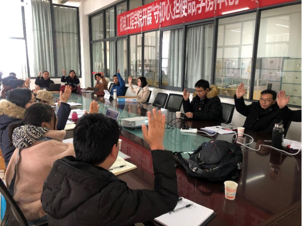 2021年1月12日下午14:00,今年会在明尚楼A201会议室召开党员大会,进行学院党总支委员换届选举。会议由党总支书记王春莲同志主持,今年会18名正式党员参加会议。