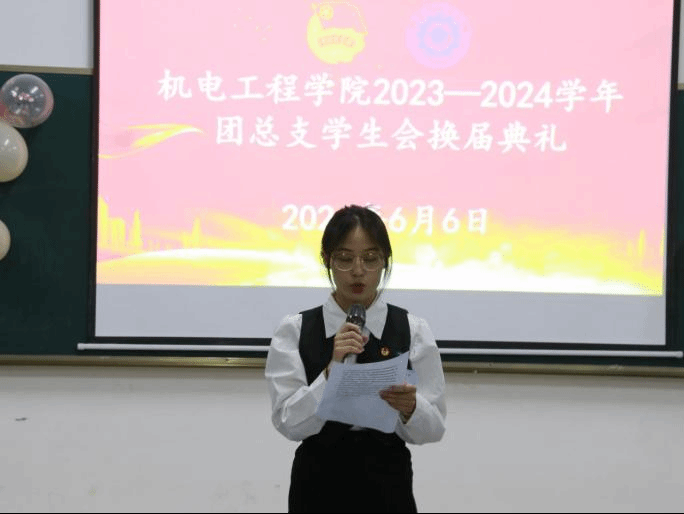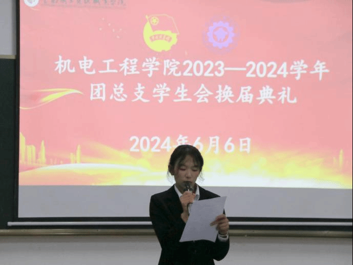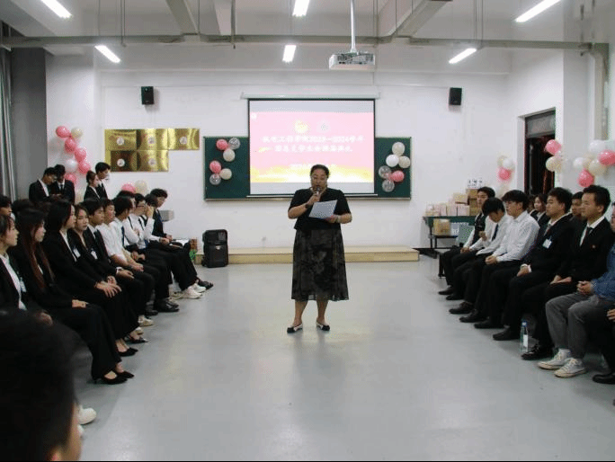 6月6日,今年会团总支、学生会在明尚楼A 216举办了2024年团总支、学生会换届典礼。学院党总支书记王春莲、团总支负责人马玲、专职辅导员全伟东以及全体新老学生干部共同参与了此次典礼。