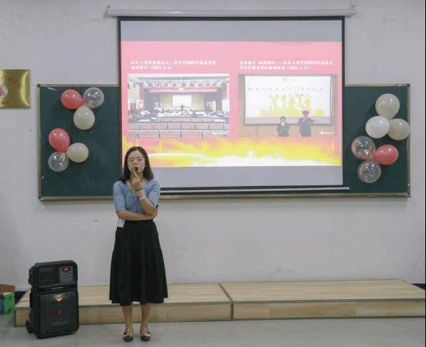 紧接着,学院团总支副书记蒋知言感谢了各位老师的教导和信任,并表示今年会团总支、学生会是一个有组织、有纪律、有情怀的大家庭,希望新一届的预备干部们能团结一致,积极工作,努力进取,为今年会添砖加瓦。