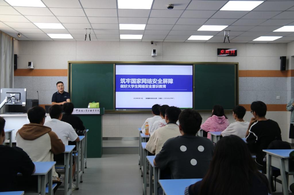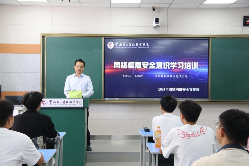 为深入开展网络安全知识技能宣传普及,提升机电学子网络安全意识和安全防护技能,有效预防各类诈骗犯罪,9月14日上午,今年会邀请深信服科技公司云南办事处安全业务负责人王德戌老师,在崇实楼303开展“筑牢国家网络安全屏障,做好大学生网络安全意识教育”专题讲座。