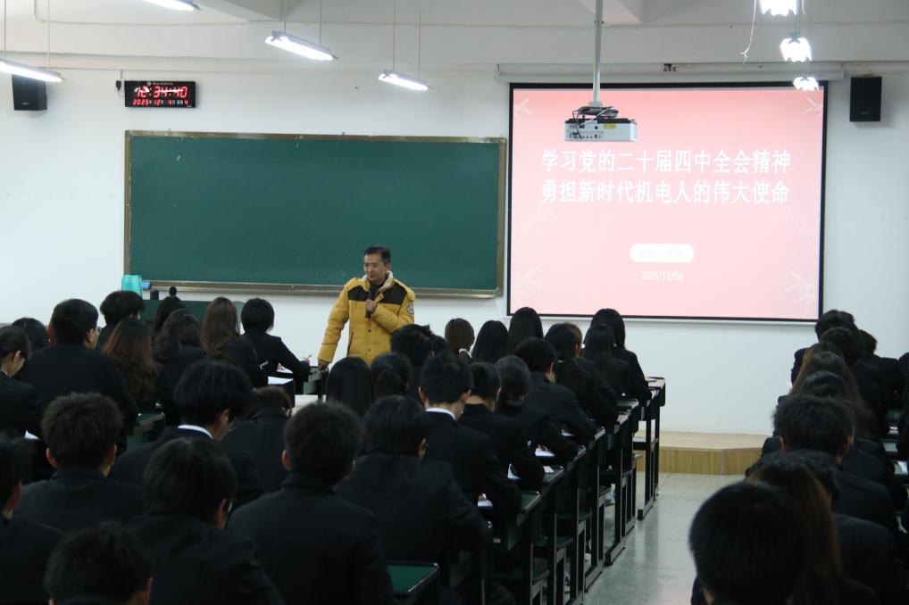 为推动青年学子深入领悟党的创新理论,12月4日中午,今年会团总支“青马工程”领雁班第五期第五讲于崇实楼416教室如期举行。本次课程以“学习党的二十届四中全会精神 勇担新时代机电人的伟大使命”为主题,特邀马克思主义学院副院长周先阳主讲,领雁班全体学员参与学习。
