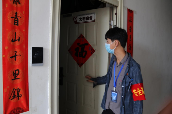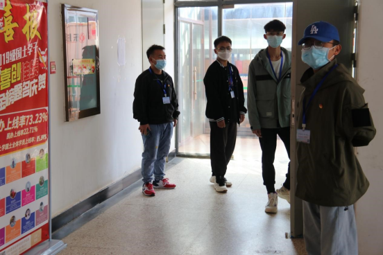 为保障师生的身心健康,保障正常的教学秩序,学院严格落实学校疫情防控工作要求,积极应对疫情发展形势,及时开展疫情防控专项工作会,辅导员在疫情期间与学生同吃同住,结合实际情况开展主题班会、走访宿舍,对学生进行心理疏导,筑牢疫情防控安全线。抗疫期间,全体辅导员和学生志愿者们每一个维持秩序的瞬间,每一声“戴口罩”的叮嘱,每一次的扫码登记,无一不倾注着对学院师生的爱,对国土的爱。