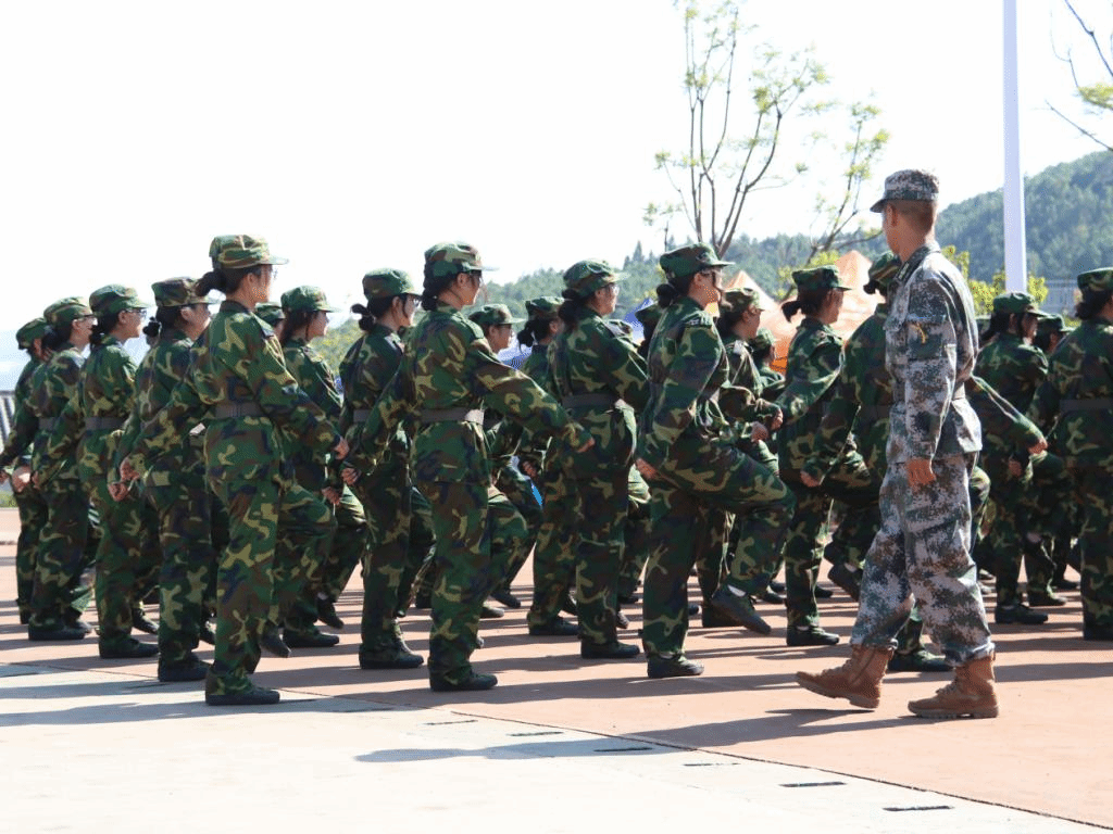 昂首挺胸,手贴裤缝。经过一周的辛苦训练,小萌新眼神中个个散发着坚韧,人人脸上满是不言弃的精气神。