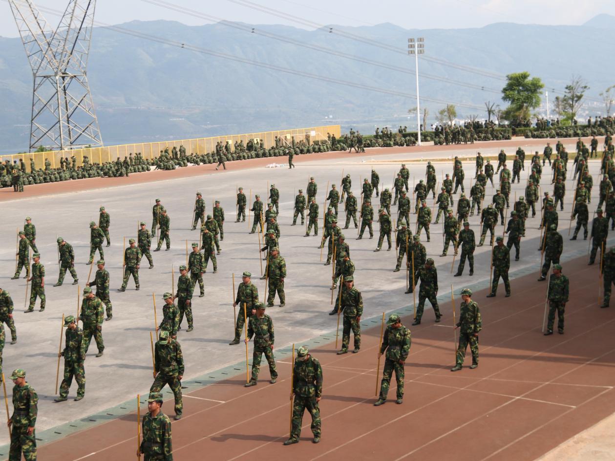 夕阳西沉,夜幕降临,嘹亮的军歌环绕操场,热血被旋律唤醒,歌声里满是热烈灿烂的青春。