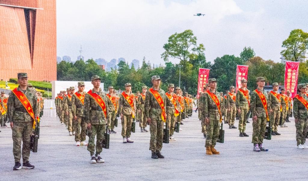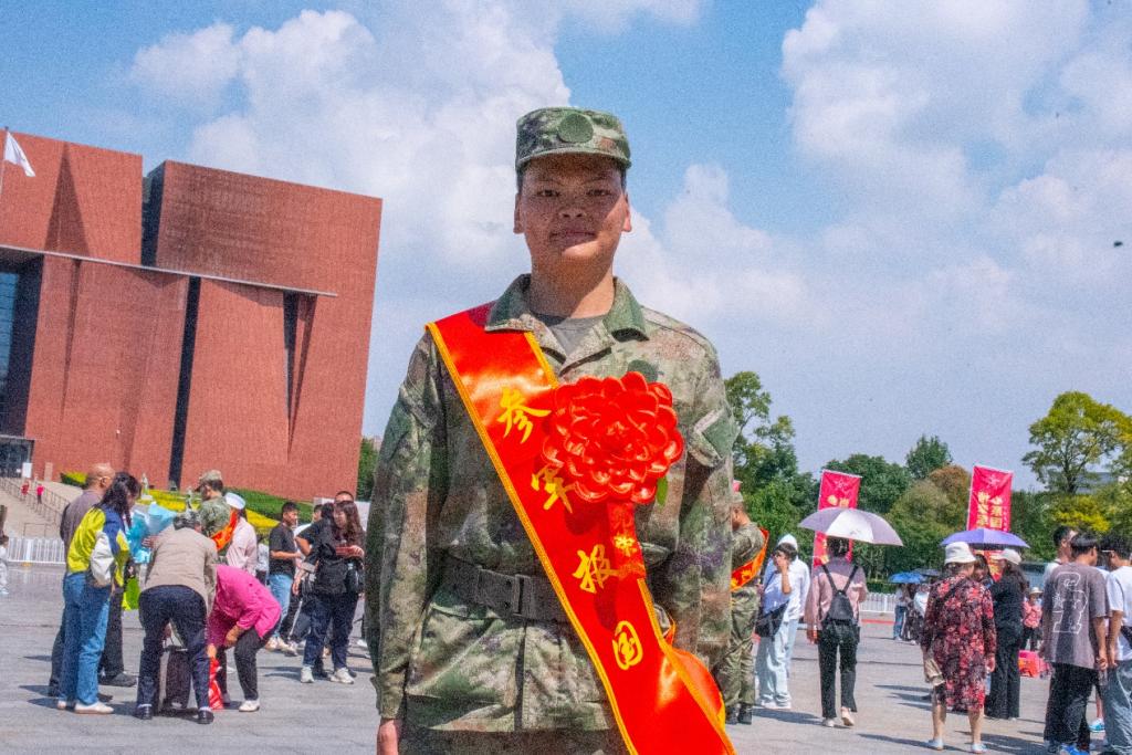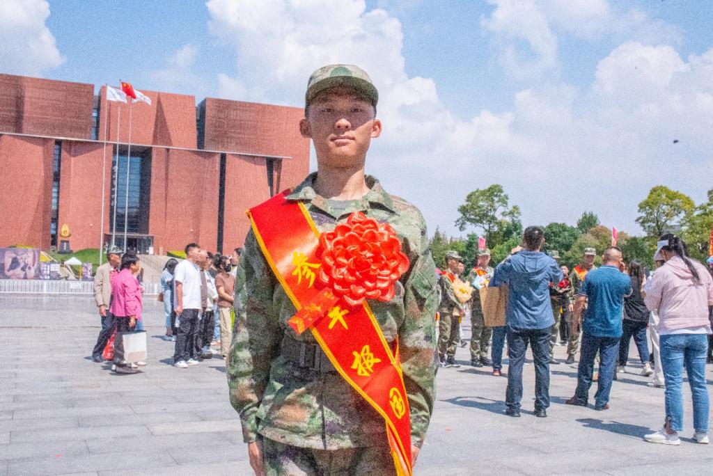 仪式上,出征的勇士,身着迷彩装,坚毅刚强。大红花映衬年轻脸庞,眼神充满对未来的憧憬与对祖国的忠诚。整齐的队列,自信而内敛。他们是新时代骄子,带着家乡期望奔赴祖国所需之地,用青春热血铸就钢铁长城,守护祖国安宁繁荣。