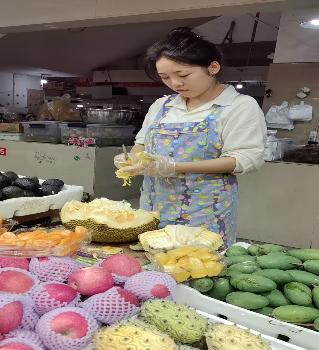 这个暑假我不是躲在房间里刷手机的“闲人”,而是成了家里水果摊的“编外店员”,多日的忙碌,让我对父母的辛苦多有体会。选水果讲技巧:要捏捏桃子的软硬、翻看框底有无坏果,稍不留意就可能拿到不新鲜的果子。回到摊位需把最鲜亮的葡萄、最饱满的西瓜摆在显眼处,这些细节都是母亲反复叮嘱的“生意经”。卖货中挑战更多。遇到挑剔的顾客,要耐心解释每种水果的口感;碰到砍价的大爷大妈,得笑着周旋,学习如何既保住利润又不让对方失望。曾有一位老奶奶想买菠萝蜜却担心不够甜,我直接拿包果肉给她品尝,最后她买了两斤菠萝蜜。每当夕阳西下时,看着剥了两三框的菠萝蜜皮和微信中的零钱,我深刻地懂得了“每一分钱都来之不易”,收获了成长经历。