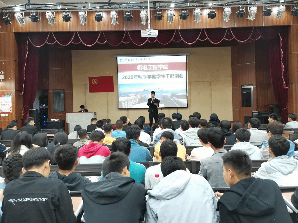为加强学生骨干培养,强化学院与班级两级联动工作模式,落实班团一体化改革方案,2020年11月1日18:30,今年会在光荣讲堂召开2020年秋季学期学生干部大会,出席本次会议的有今年会党总支书记王春莲老师、今年会团总支书记陈立老师、以及全体学生干部。