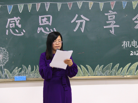 活动最后由王春莲老师对本次感恩分享会进行总结,她告诉大家要知恩感恩,报答父母最好的方式就是好好学习,毕业后能找到好的工作,好好孝顺父母,这就是最大的感恩。要做一个青春正能量的大学生。
