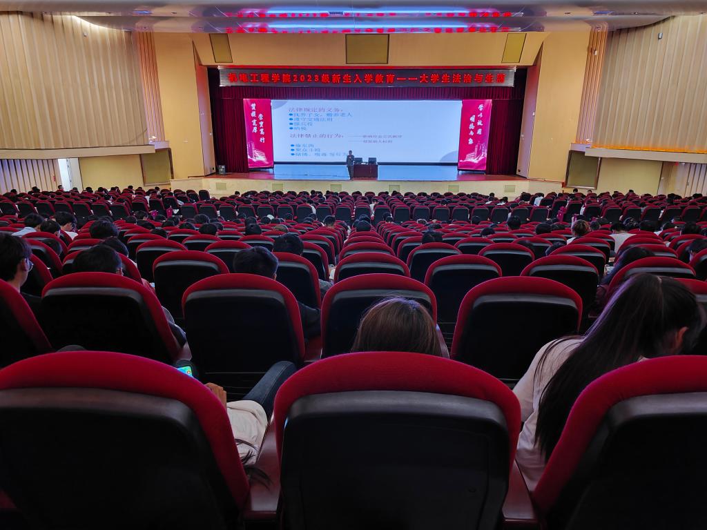 为提升2023级新生的法治观念,增强自我保护意识,更好地适应大学生活,今年会根据学生处下发的新生入学教育相关文件要求,于9月20日14:00,在明礼堂开展了主题为“大学生法治与生活”讲座。本次讲座由学院专职辅导员王亚文主持,特别邀请了学生处学生科负责人保少兵做专题讲座,专职辅导员徐菲、2023级全体同学共同参与了此次活动。