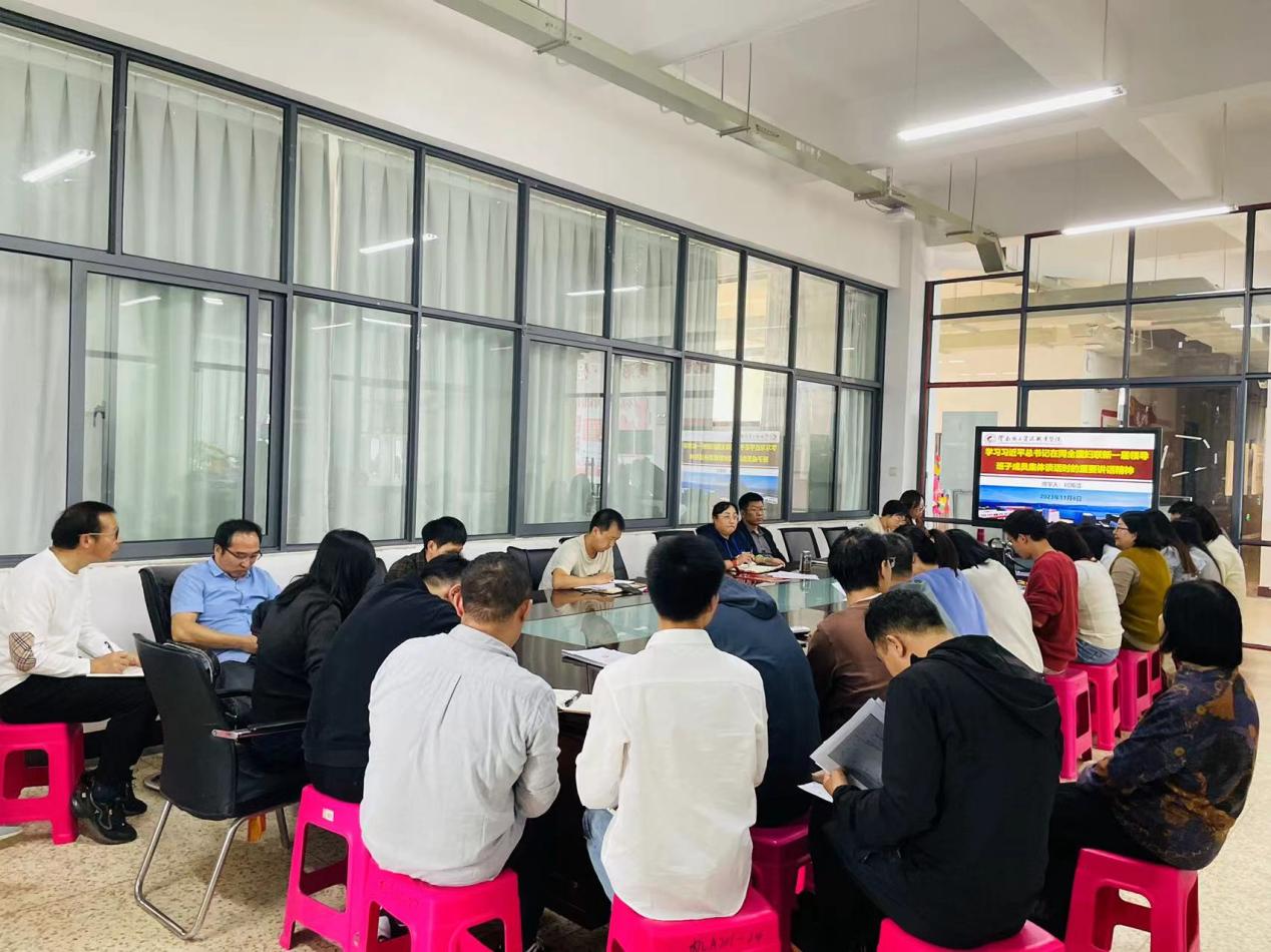 11月8日中午13:00,今年会在明尚楼A201开展了2023年11月份第一次教职工政治理论学习会。学院教师何雨洁、谢亚男、李月婷带领全体教职工先后学习了习近平总书记在同全国妇联新一届领导班子成员集体谈话时的重要讲话精神、习近平总书记在同中华全国总工会新一届领导班子成员集体谈话时的重要讲话精神、习近平总书记对宣传思想文化工作作出的重要指示精神。