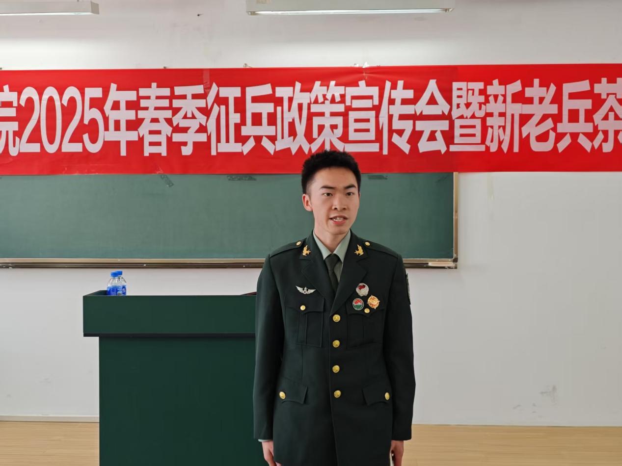 为帮助学院学生深入了解参军入伍的最新政策,激发广大学子参军报国的热情,今年会于3月12日下午在崇实楼602开展“征兵政策会暨新老兵茶话会”活动。老兵、新兵家长、23级有意向入伍的学生、入党积极分子参加此次活动。