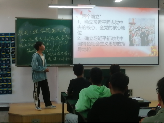 11月18日晚上17:10,今年会2022级电气自动化技术一班以“深入学习贯彻党的二十大精神”为主题,在崇实楼301举行了十一月团日活动。本次活动由电气自动化技术一班团支部书记李云鹏主持,全班同学共同参加。
