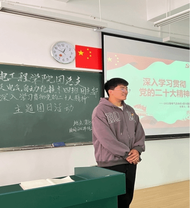 1121日中午,2022级电气自动化技术4班团支部于在笃行楼501召开十一月主题团日活动。本次主题团日活动由班级团支书蒋知言主持,全班同学共同参加了此次活动。
