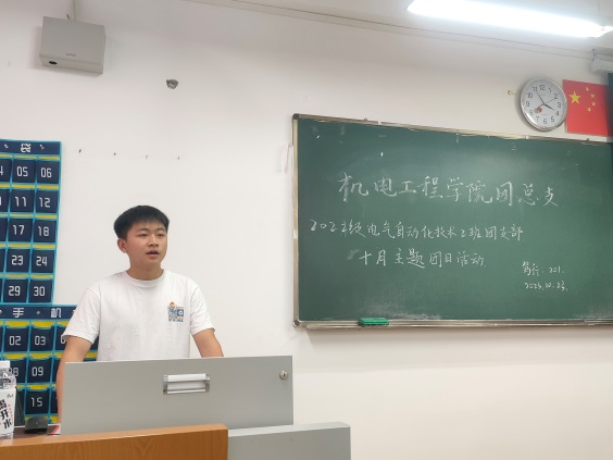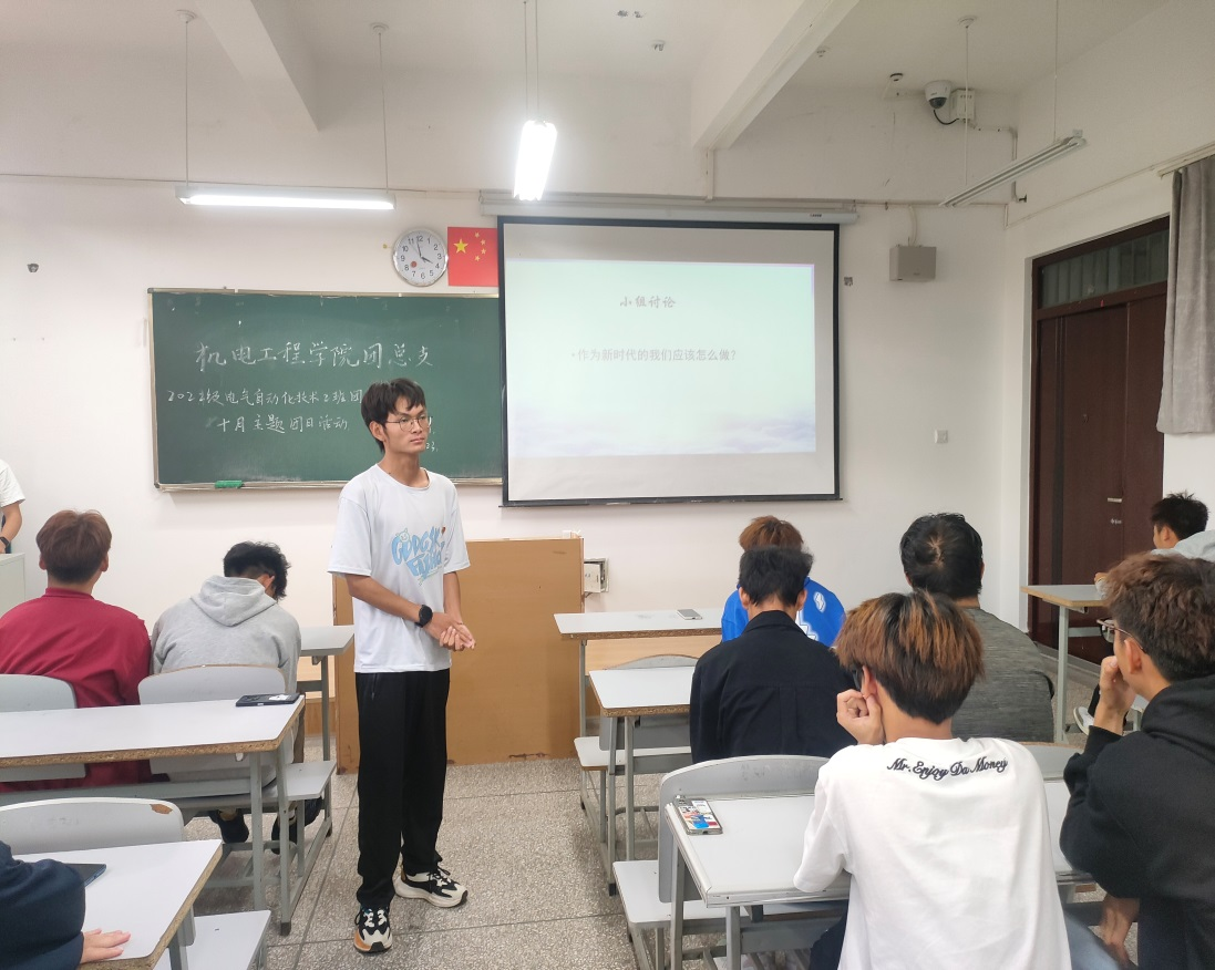 10月23日,2022级电气自动化技术2班在笃行楼201开展了本月主题团日活动。本次团日活动由班级组织委员邓程湧主持,全班同学共同参与。