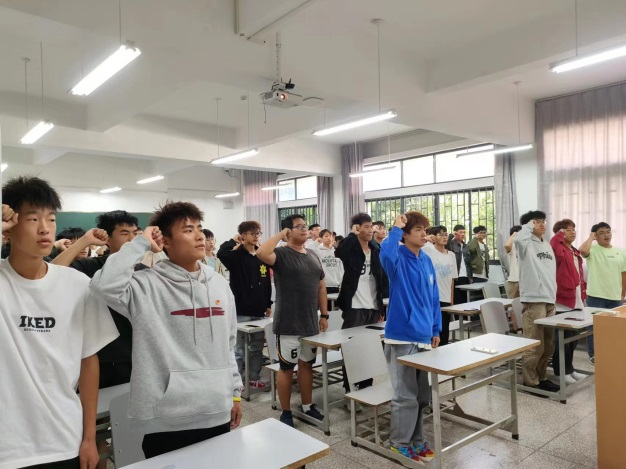 活动开始,组织委员邓程湧带领全班同学重温入团誓词、齐唱团歌。同学们声音洪亮,气势慷慨激昂,眼里充满希望,脸上洋溢青春的执着和坚定。