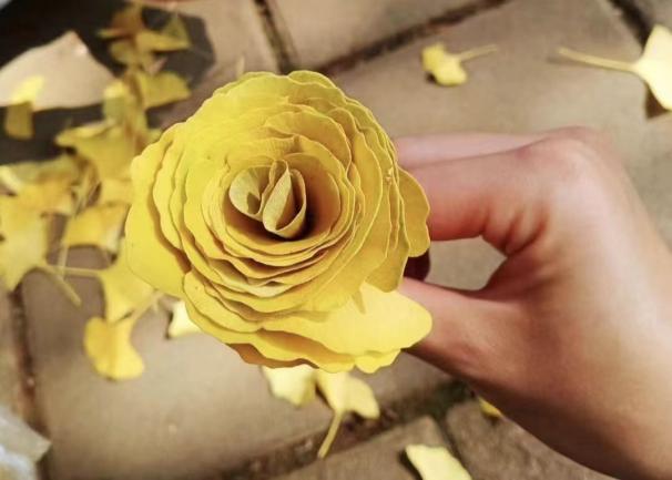 银杏树黄时,飒爽英姿,片片黄叶将校园装扮成金色的世界。为了留住秋色,感受大自然的馈赠,提升大家的环保意识,同时提供同学们展示动手能力的机会,班级组织了手工DIY的活动。同学们用落叶为制作材料,拼成一件件手工艺品,展现美丽的落叶。