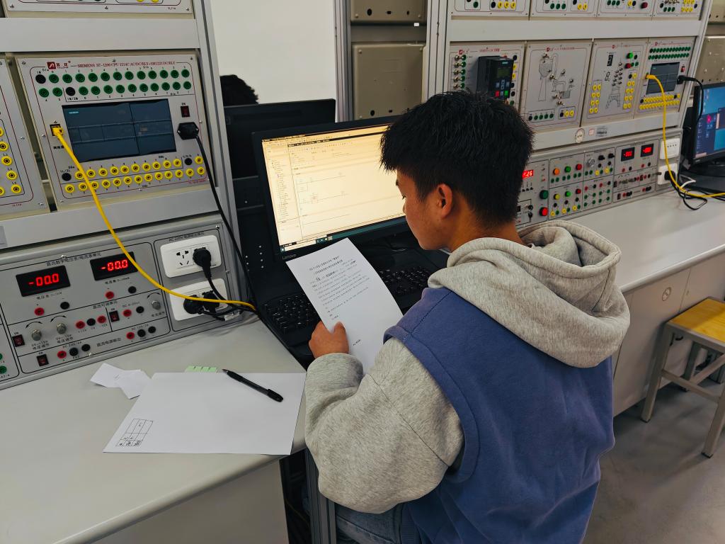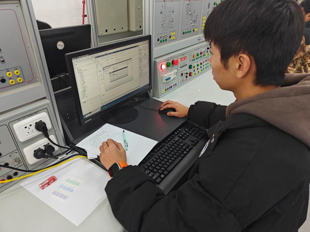 本次竞赛覆盖了电气自动化技术专业的核心知识和技能要求,重点突出专业知识与技术的综合应用。竞赛采用个人赛的形式开展,参赛选手必须在一个半小时内完成工业网络关键设备接线、工业网络智能控制系统编程和调试任务。评委老师严格按照评分标准,对选手参赛过程中的操控单元独立功能完成情况、控制系统整体功能完成情况、故障排除、职业素养与安全意识几方面进行评分。