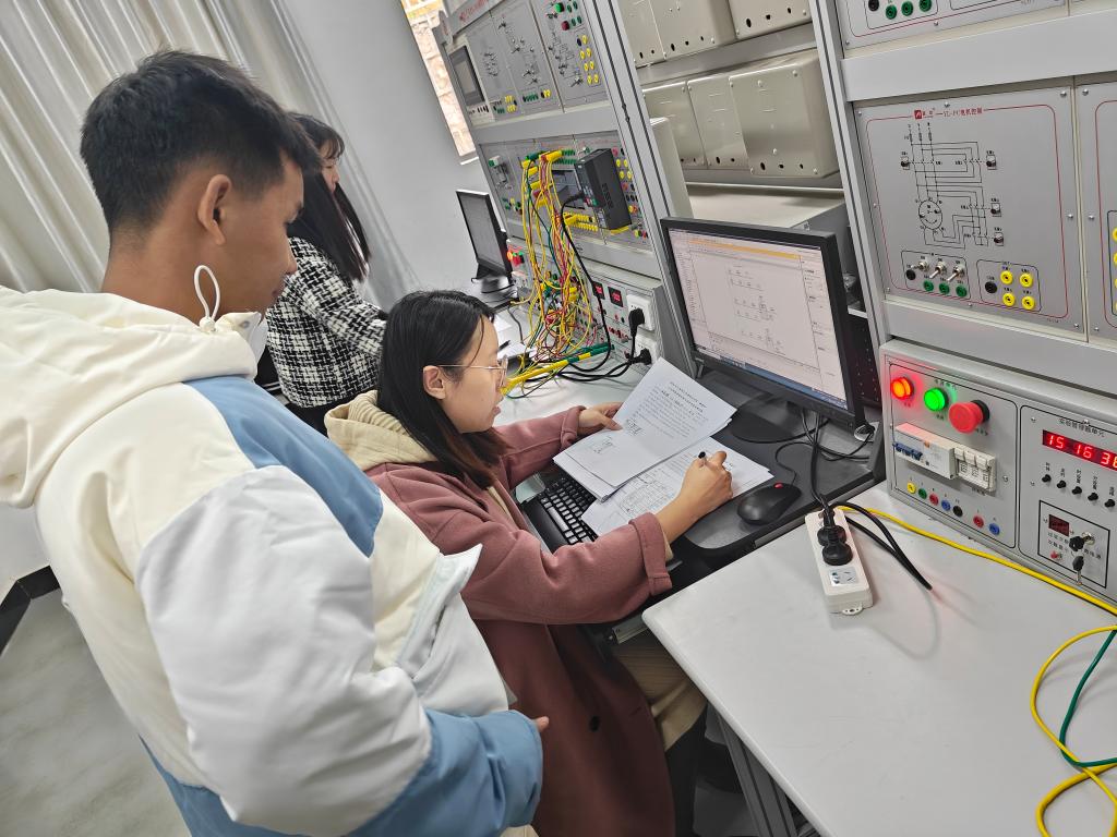 比赛现场,各队选手沉着冷静、娴熟操作,用每一个线路的连接来展示自己扎实的功底,用每一个功能的调试来展示了自己的专业技能水平,高效地运用所学知识技能,高质量地完成每一项操作步骤,展现了机电学子拼搏向上的精神面貌和“精益、专注、创新”的工匠精神。