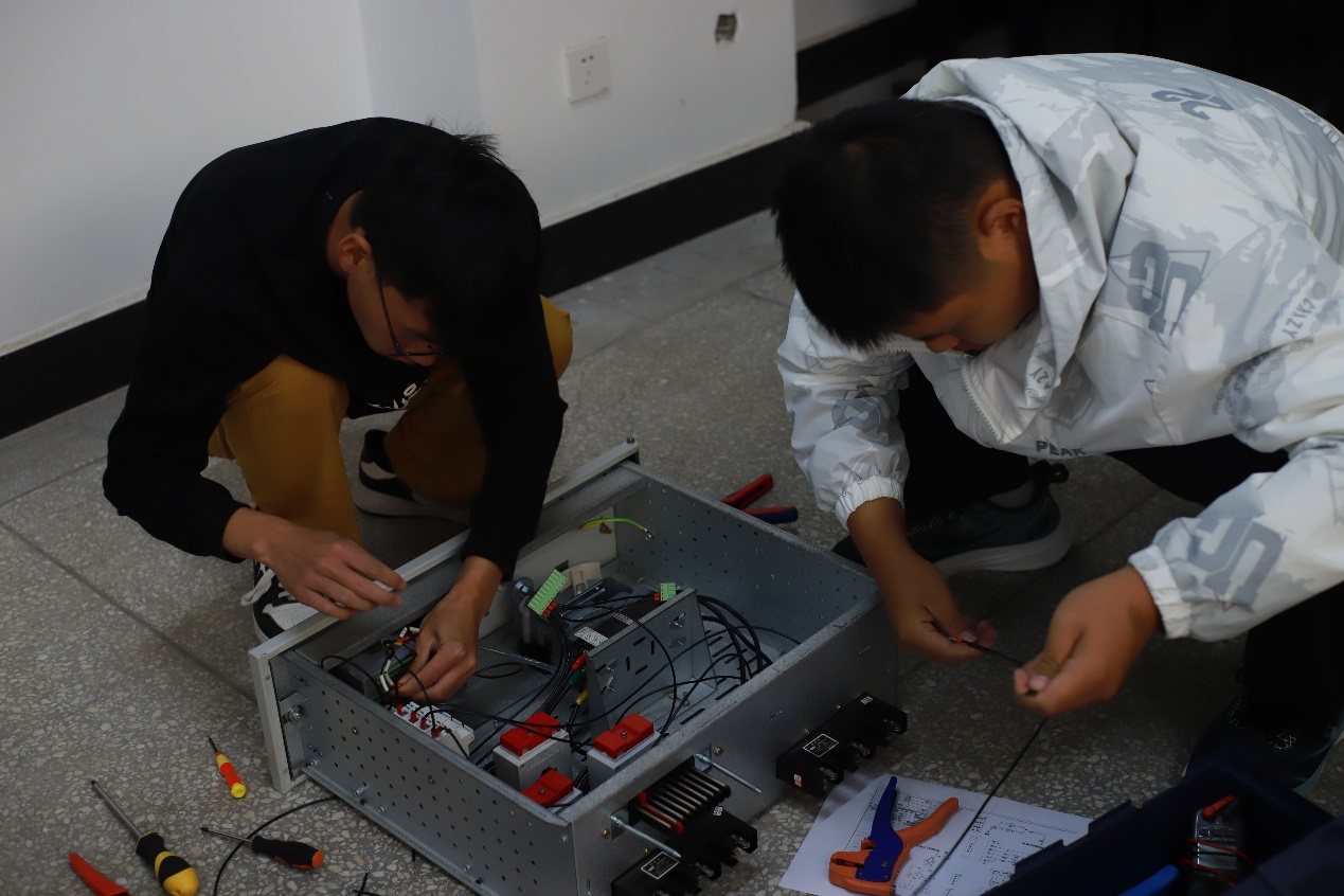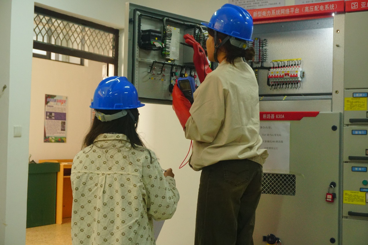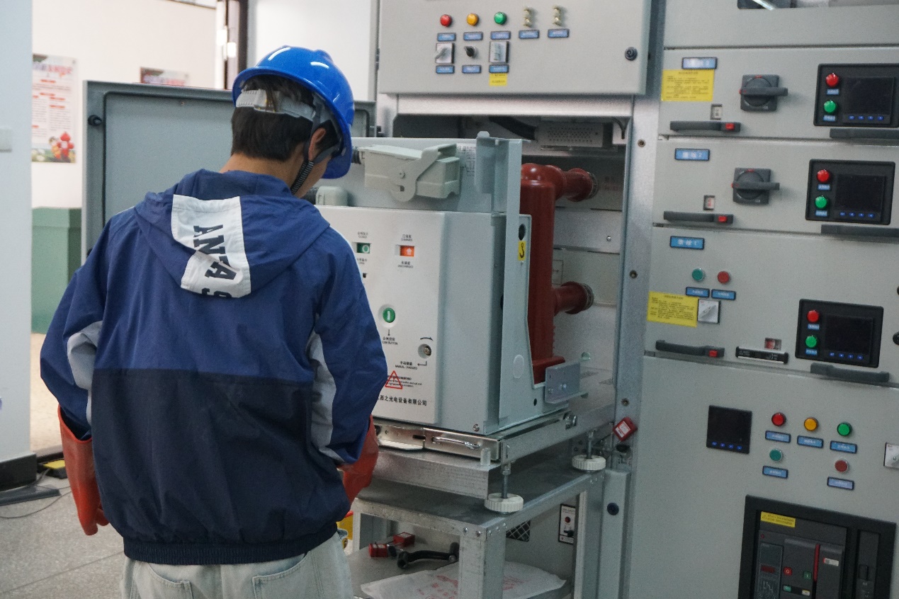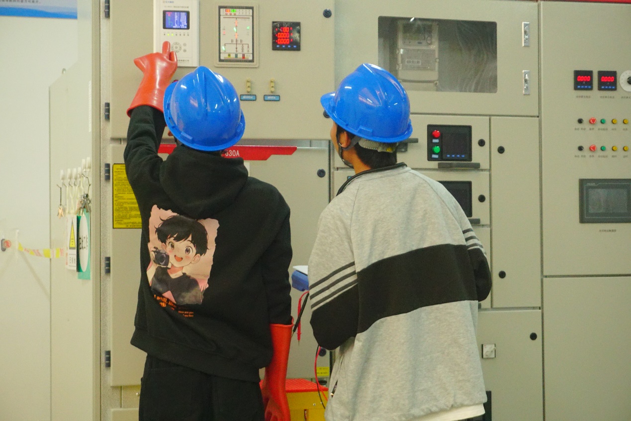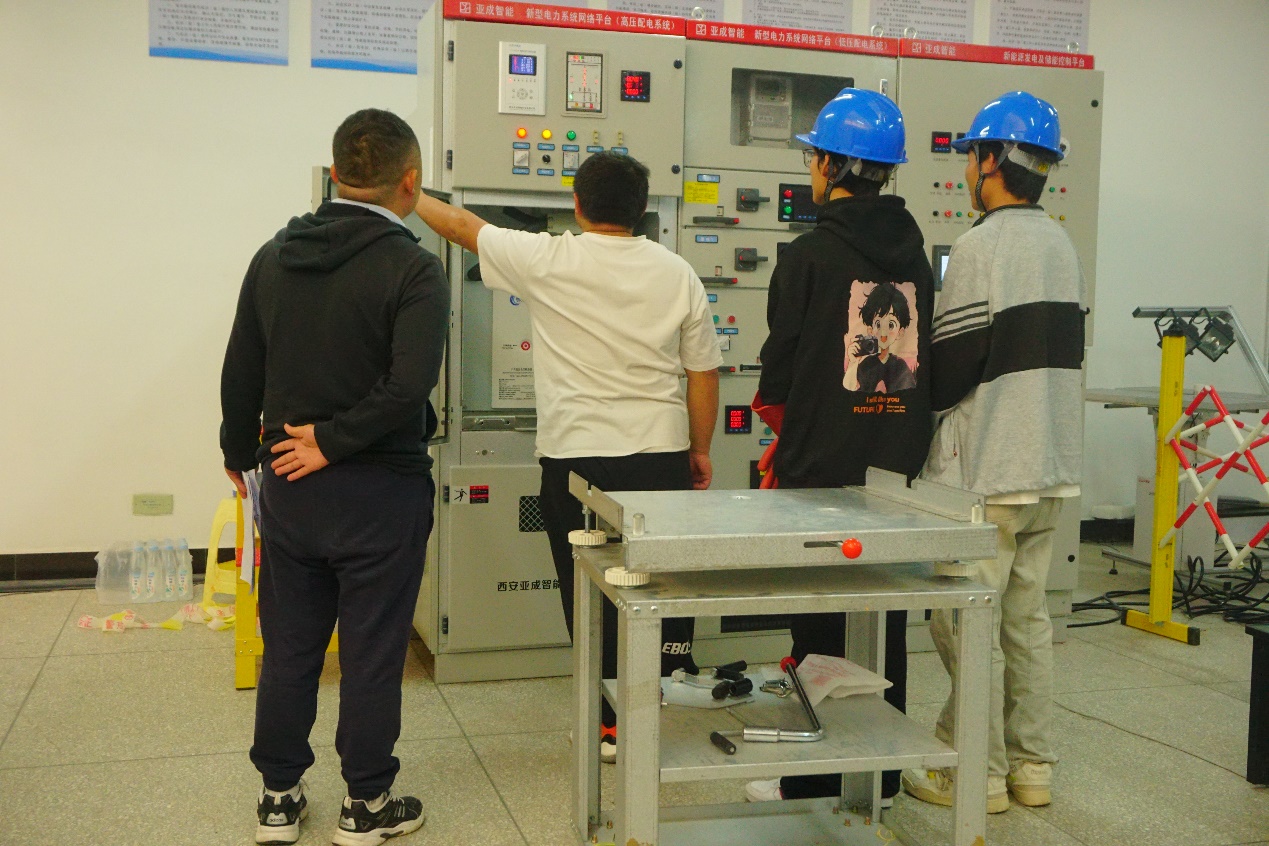 本次新型电力系统技术与应用赛项包括系统控制程序编写(PLC)与功能实现、低压配电系统的设计、安装与运维、电气一次系统模拟操作及故障排除三大模块。参赛选手通过有条不紊地操作,团队成员之间默契配合,展现出扎实的技能操作水平和职业能力功底。同时,本次比赛也检验和展示了新能源装备技术专业教学改革成果。