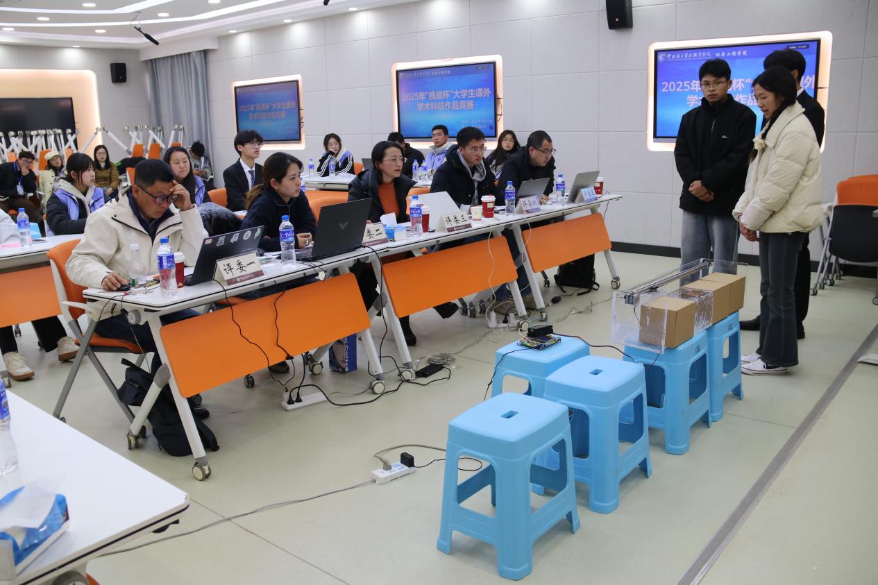 本次竞赛设置自然科学类学术论文、哲学社会科学类社会调查报告和学术论文、科技发明制作类三个赛道,采用“项目展示+现场答辩”双环节评审机制。18个参赛项目紧扣“学科交叉融合与创新实践”主题,通过实物演示、数据建模、案例推演等多元化形式,系统展示了项目的创新价值与社会效益。评审专家从技术创新性、实践可行性、科学严谨性、技术先进性和应用转化潜力等维度进行综合评估,并对各项目的研究方法、技术路径等关键问题提出了优化建议。