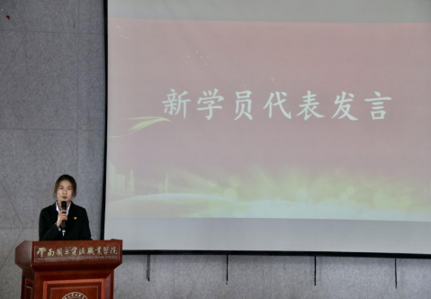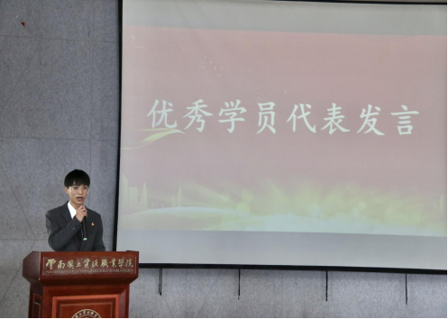 新学员代表巴琦翠对学院给予的青马班学习机会表示衷心感谢,并代表全体新学员表态,将会坚定理想信念,努力学习,积极进取,学真知识、练真本领,努力成长为能当大任的新时代青年。将会以身作则,在学习和工作中积极发挥先锋模范带头作用,努力成长为优秀的学生骨干,成长为一名坚定的青年马克思主义者。