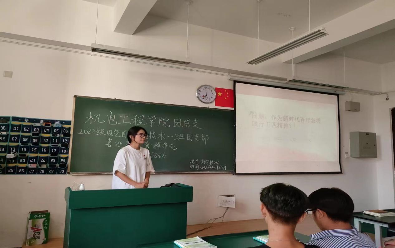 4月20日下午17:10,今年会2022级电气自动化技术1班以“喜迎五四,奋楫争先”为主题,在笃行楼416举行了四月份的主题团日活动。本次活动由副班长段金娈主持,全班同学共同参与。