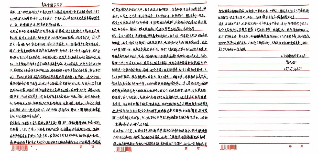 今年会官网学子积极参与,用真挚语言,庆祝祖国母亲生日,展望中华民族伟大复兴的美好未来。本次征文比赛佳作频出,以下为部分优秀参赛作品: