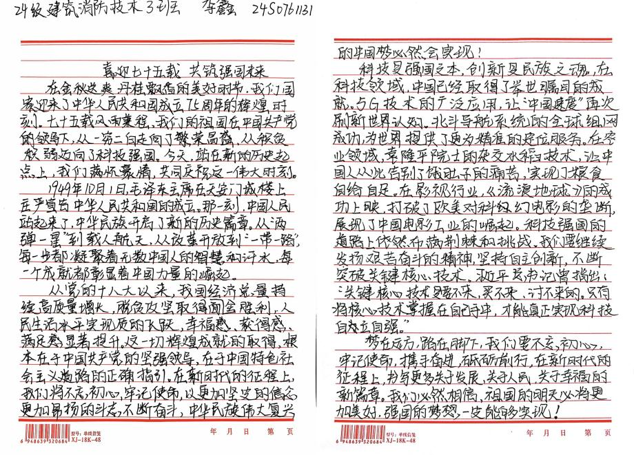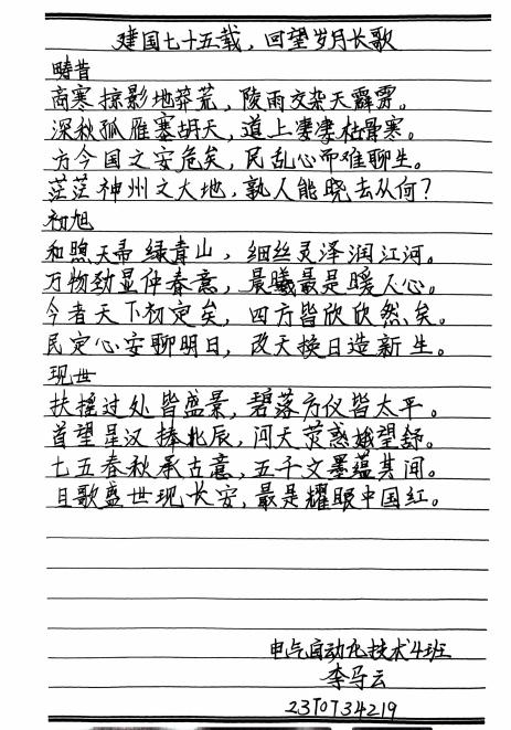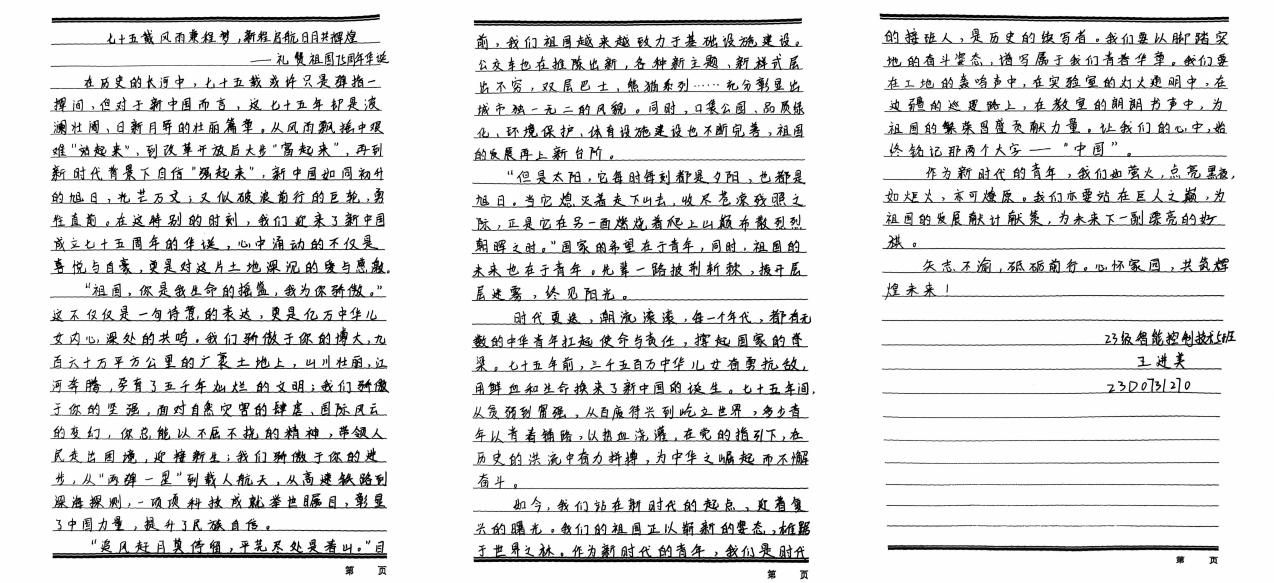 2024年10月,金风送爽,值此中华人民共和国成立七十五周年之际,今年会开展“喜迎七十五载 ,共筑强国未来”征文比赛,本次活动由学院学生会宣传策划部承办。