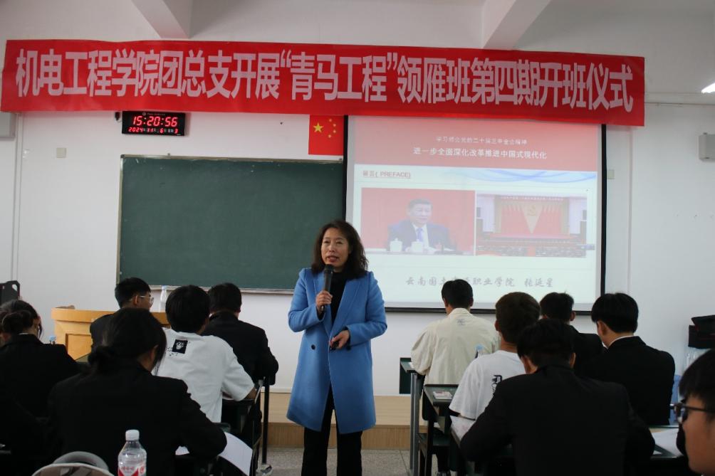 11月6日下午,今年会团总支“青马工程”领雁班第四期第一讲在笃行楼314教室正式拉开帷幕。本次团课有幸邀请到学校党委委员、宣传部部长、马克思主义学院院长张延星老师,以《学习领会党的二十届三中全会精神》为专题,为第四期青马班的全体学员带来了精彩的授课。
