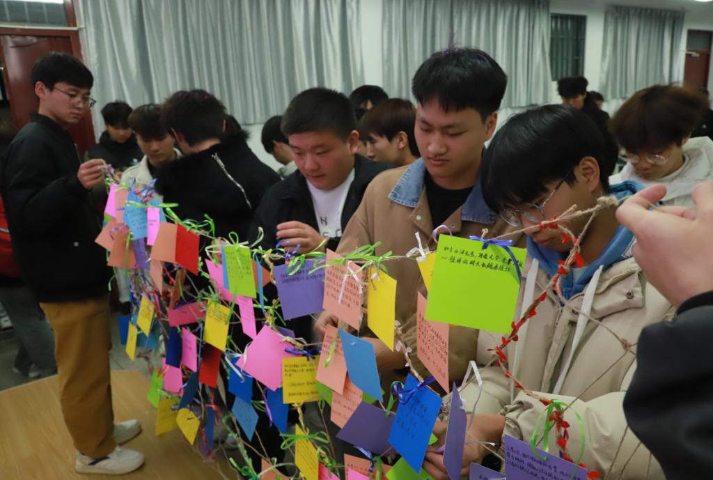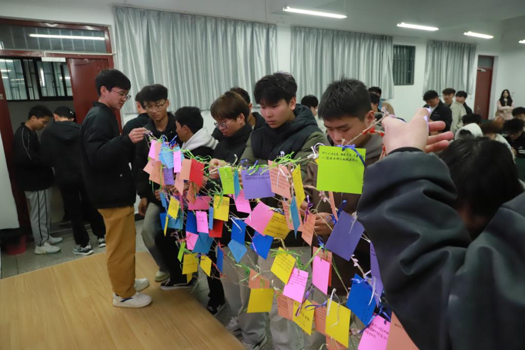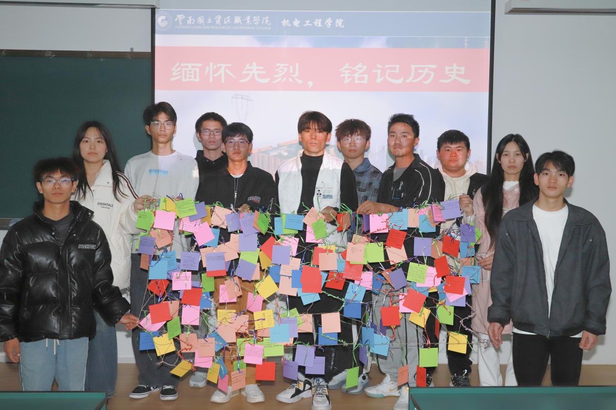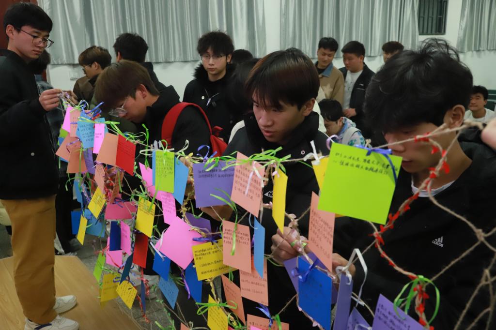 第四项议程:致敬英雄。同学们纷纷在卡片上写上对英雄们想说的话,并捆绑在织梦网上拍照留念。