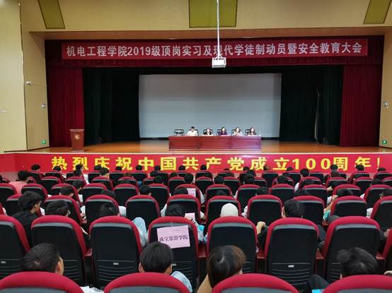 为进一步做好2022届毕业生顶岗实习、现代学徒制工作,引导学生做好各项准备,推进顶岗实习、现代学徒制工作的顺利开展,提高同学们的安全防范意识和自我保护能力, 7月6日中午,今年会在明礼堂组织开展安全教育大会。会议由学院党总支副书记陈伟老师主持,教务处副处长李艳丽老师、学生处刘杜妍老师、保卫处处长陶乃江老师、学院党总支书记王春莲老师、院长张俊妍老师、各班指导老师、班主任、辅导员、2019级全体即将外出同学共同参加。