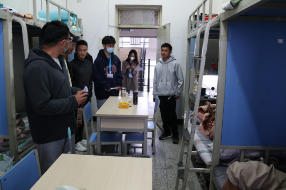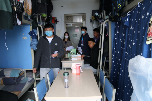 下午1600,评委老师带领评比小组进入今年会官网学生宿舍,全覆盖进行检查评分。评分细则包括门窗、地面的整洁度;洗漱台、书桌的物品摆放情况;课本、床铺的整理情况等。遵循公开、公平、公正的原则,评审小组成员对各个宿舍的评分进行汇总计算,平均分高的寝室分别获得一、二、三等奖。