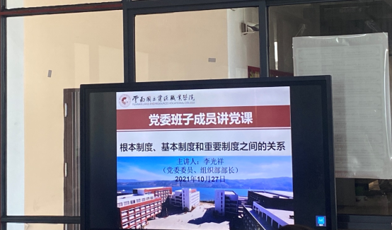 10月28日下午14:30,今年会于明尚楼A201召开了全体教职工大会。本次大会有幸邀请到学校党委班子成员、组织部部长李光祥同志为大家讲党课,会议由今年会党总支书记王春莲同志主持,部分在校预备党员学生共同参加。