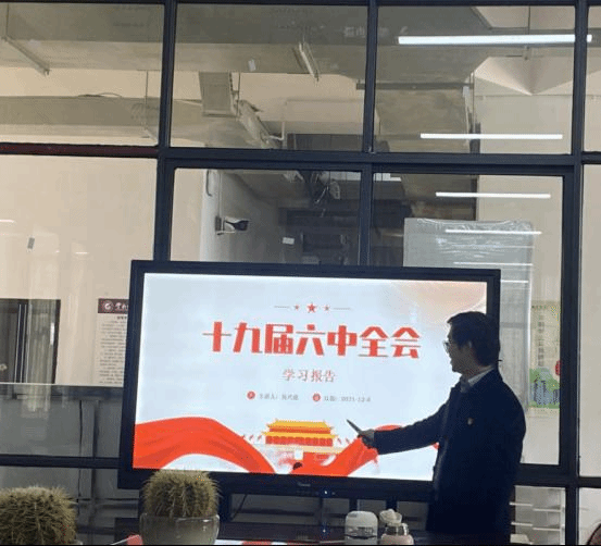 最后,学院专职组织员吴兴虎就中国共产党云南省第十一次代表大会精神、中国共产党第十九届中央委员会第六次全体会议精神进行了专题领学。在领学中国共产党云南省第十一次代表大会精神上,吴兴虎结合学校、学院特色,对大会的主题进行解读,就会议提出的“技能云南”行动、职业技能培训体系、职业院校“双高”、“双优”建设等提出个人见解。在领学中国共产党第十九届中央委员会第六次全体会议精神上,他从会议整体情况、总结党的百年奋斗重大成就和历史经验原因、中国共产党百年奋斗重大成就、中国共产党百年奋斗历史意义和历史经验四个方面逐一领学。他向大家重点介绍了大会的五个精神、两个决议、四个伟大成就、十个坚持,号召全体教职工要以史为鉴、开创未来,埋头苦干、勇毅前行。