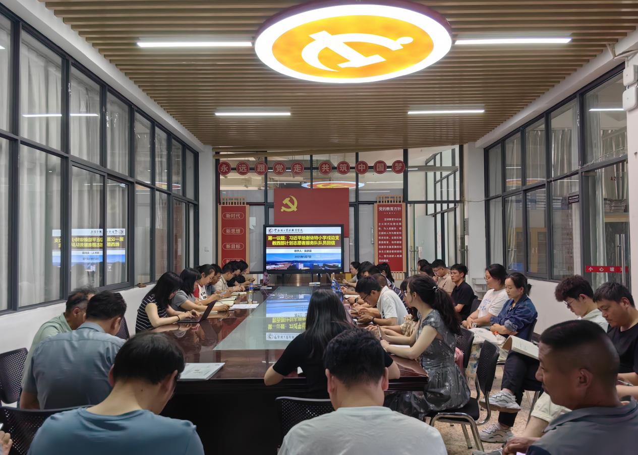 教职工政治理论学习会第一议题为习近平给谢依特小学戍边支教西部计划志愿者服务队队员回信,由智控党支部宣传委员吴彦霖领学。专题学习内容为《习近平关于加强党的作风建设论述摘编》,由智控党支部组织委员裴倩倩领学。