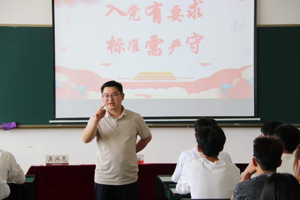 开班仪式结束后,专职组织员吴兴虎老师以《大学生入党须知和注意事项》为题讲授首堂党课,通过政策解读、案例分析等方式,深入解读了入党流程、党性修养提升等关键内容,为学员们指明了努力方向。