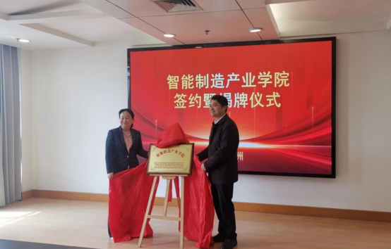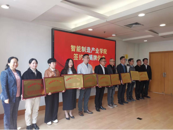 之后,我校与浙江省嘉兴市秀洲区人力资源和社会保障局、嘉兴市秀洲区金慧大学生社会工作服务中心及嘉兴市秀洲区8家代表性企业共同签署了《共建智能制造产业学院战略合作框架协议》,并一起为智能制造产业学院揭牌。