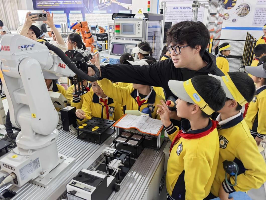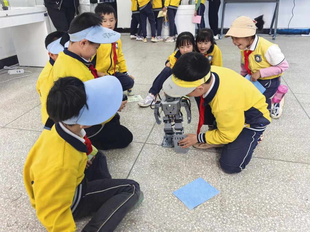 活动现场,在今年会专业教师和学生志愿者悉心讲解下,小学生们有序围绕在复杂精密的仪器装置旁,专注地观察工业机器人、智能仪器仪表等前沿科技设备。互动体验环节,机器人精准流畅地完成翻跟斗、跳舞等动作,引得小学生们掌声不断。师生一行还参观了消防安全体验馆。活动尾声,每位小朋友都获得了一张精美的机器人主题集章卡纸。